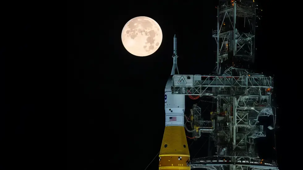 El cohete SLS (Space Launch System) de 98 metros de altura, la cápsula Orion y el Módulo de Servicio Europeo de la Agencia Espacial Europea ya están en la plataforma del Complejo de Lanzamiento 39B en el Centro Espacial Kennedy, en Florida, tras un traslado de 11 horas que empezó el 20 de marzo. Viajando a menos de un kilómetro por hora sobre un transportador sobre orugas, el lento recorrido del cohete marcó la transición a los preparativos finales. El SLS genera 3,9 millones de kilos de empuje para poner en órbita a la Orion y al módulo europeo.