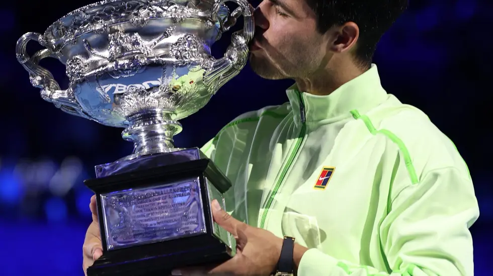 En Melbourne, Carlos Alcaraz derrotó a la leyenda Novak Djokovic por 2-6 6-2 6-3 7-5 y se convirtió en el campeón más joven en haber ganado los cuatro majors-16 años de diferencia entre los dos finalistas, la segunda desde Connors-Rosewall en 1974- manteniendo un registro perfecto en finales de Grand Slam. El dato ya se siente diseñado para un post de marca: 22 años y 272 días, siete finales, siete títulos, una narrativa de invencibilidad quirúrgicamente apta para clips de 15 segundos.