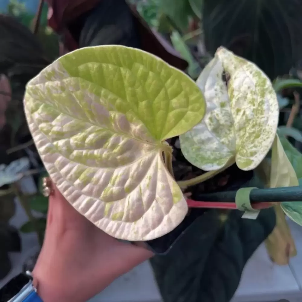 El Anthurium luxurians variegado "albo marble" que compró por US$ 26.000 es, justamente, una de las más complicadas de mantener por su variegación. Además, su crecimiento es lento, lo que reduce las posibilidades de reproducción y eleva aún más su precio.