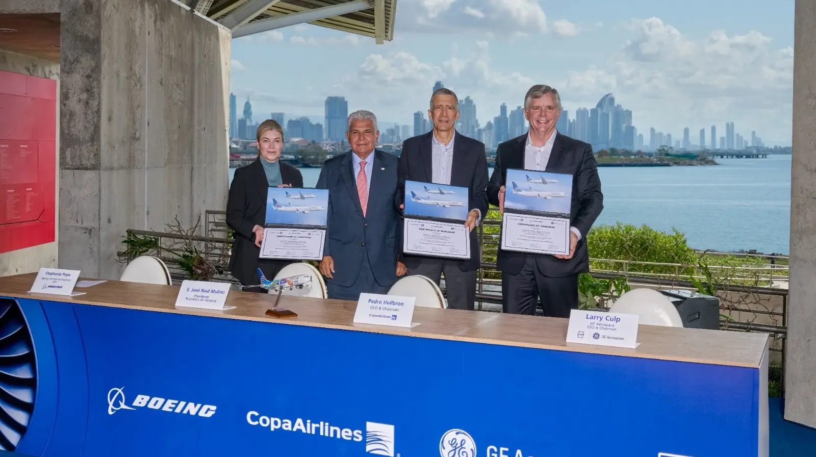La firma del acuerdo fue en la Ciudad de Panamá, de la mano de Stephanie Pope, presidenta y CEO de Aviación Comercial de Boeing; Lawrence Culp, presidente y CEO de GE Aerospace; y Pedro Heilbron. El acto se realizó este 28 de abril de 2026 y contó con la participación del presidente panameño, José Raúl Mulino, y del embajador de Estados Unidos, Kevin Marino Cabrera. (I)
